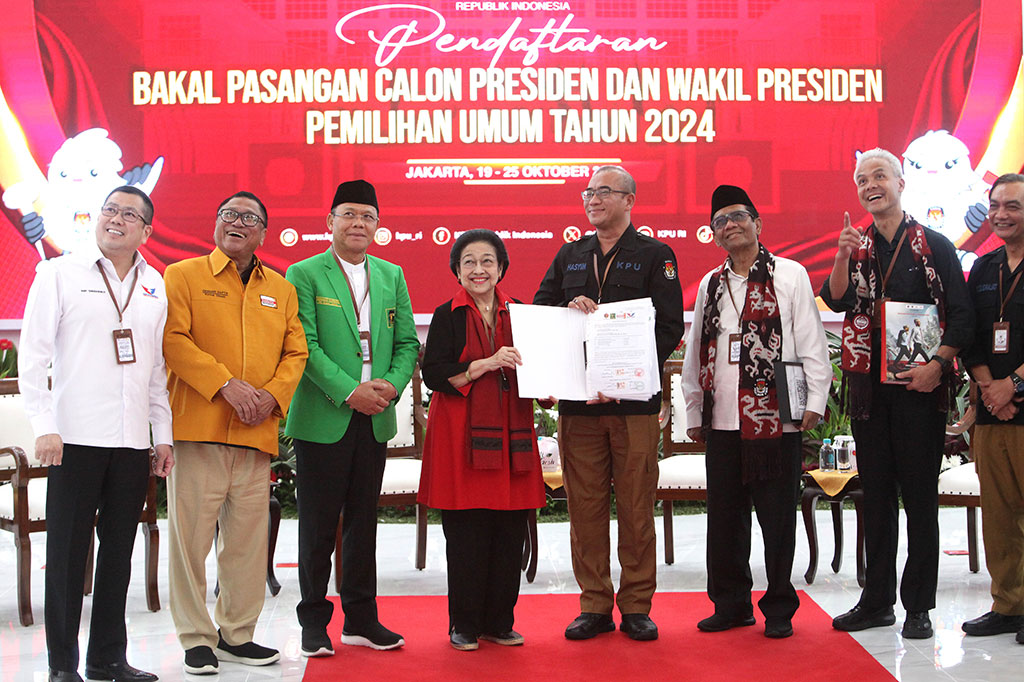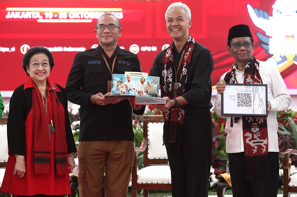 Jakarta: Komisi Pemilihan Umum (KPU) secara resmi menerima berkas pendaftaran Ganjar Pranowo-Mahfud MD sebagai calon peserta Pilpres 2024.