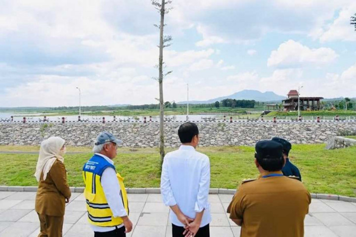 "Kapasitas tampung dari bendungan ini adalah sangat besar sekali 32,6 juta meter kubik dengan luas genangan 365 hektare yang kurang lebih akan mengairi sawah 1.900 hektare," kata Presiden Jokowi.