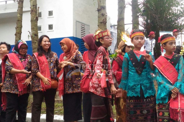 Medan: Ratusan siswa dari sejumlah sekolah dasar di Medan tampak bersemangat menghadiri acara resepsi umum pernikahan Bobby-Kahiyang, di Bukit Hijau Regency, Kompleks Setiabudi Indah, Medan, Minggu 26 November 2017. MTVN/farida noris Cek Berita dan Artikel yang lain di Google News