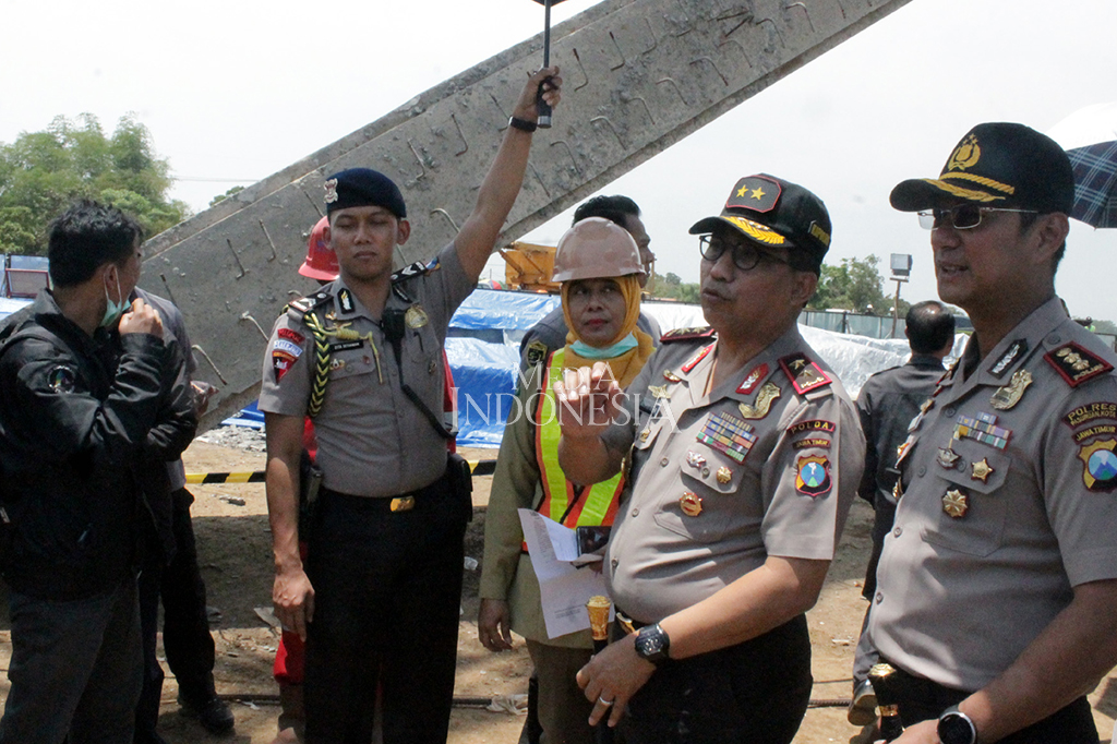 Metrotvnews.com, Surabaya: Kapolda Jatim Irjend Machfud Arifin mendatangi lokasi girder jembatan layang di pembangunan tol Pasuruan-Probolinggo km 4,5 di Desa Dawesari, Kecamatan Grati, Kabupaten Pasuruan, Selasa (31/10/2017). Ia mengatakan saat ini belum ada tersangka yang ditetapkan. Pihaknya akan meminta keterangan saksi ahli untuk mengusut dan menyelidiki kasus tersebut. MI/Abdus Syukur Cek Berita dan Artikel yang lain di Google News