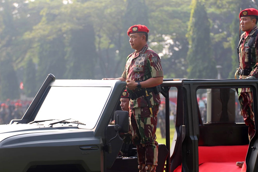 Jakarta: Panglima TNI Jenderal Agus Subianto memimpin Upacara Hari Ulang Tahun ke-72 Komando Pasukan Khusus di Markas Kopassus, Cijantung, Jakarta, Selasa, 30 April 2024.