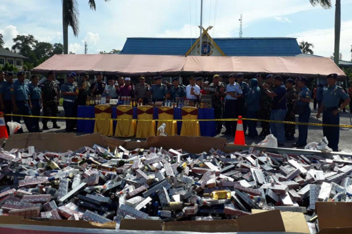 Barang bukti yang dimusnahkan terdiri dari rokok red 350 tim dan miras 829 kotak dengan rincian, antara lain muatan speed boat tanpa nama; 145 kotak, muatan KM Aini sebanyak 368 kotak serta muatan KM Fasri sebanyak 316 kotak.