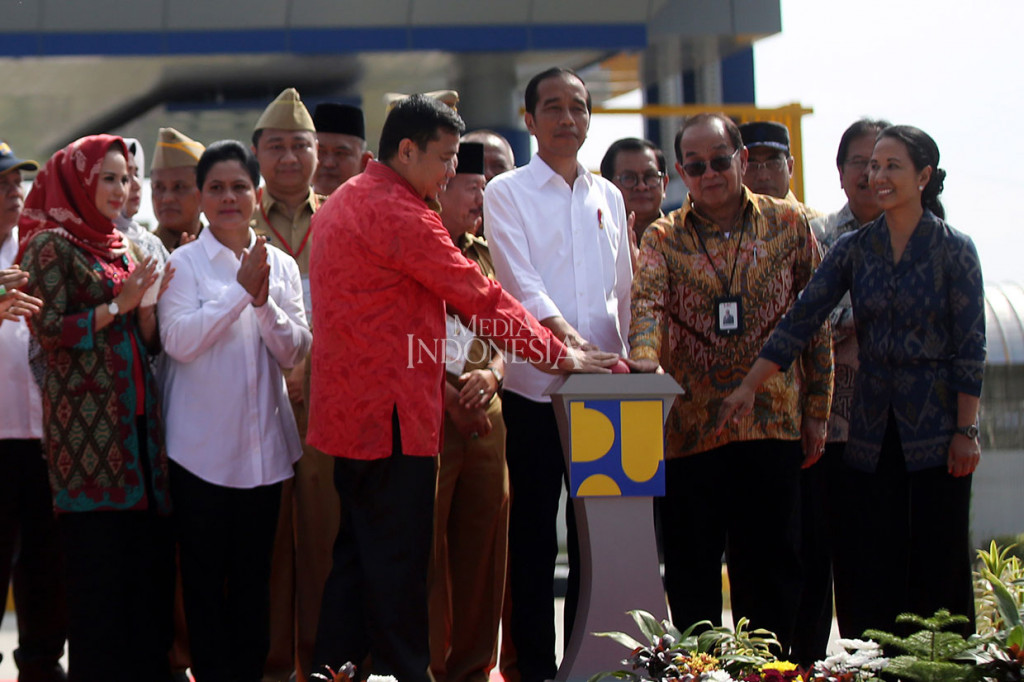 Lampung Selatan: Presiden Joko Widodo meresmikan ruas tol terpanjang di Indonesia yang menghubungkan Bakauheni - Terbanggi Besar (Segmen SS Bakauheni - SS Lematang dan Segmen SS Kotabaru - Terbanggi Besar). Dengan diresmikannya tol tersebut diharapkan dapat menggerakkan perekonomian daerah. MI/Ramdani