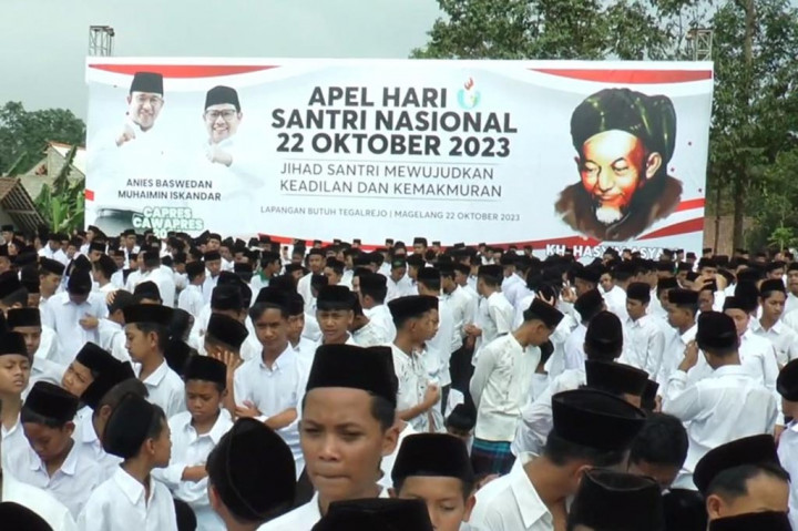 "Seluruh santri harus siap memimpin, karena santri adalah pewaris negeri yang sah, yang memang harus bertanggung jawab nasib bangsa ini," katanya di Magelang, Jawa Tengah, Minggu, 22 Oktober 2023, usai menjadi Inspektur Apel Hari Santri Nasional di Lapangan Butuh, Tegalrejo, Kabupaten Magelang.