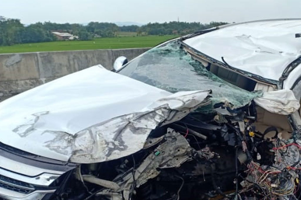 Kerusakan parah terlihat di samping kiri mobil suv tersebut.