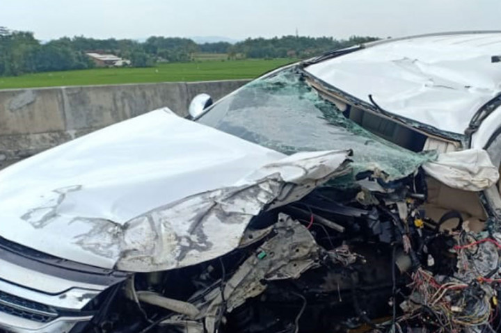 Dalam foto-foto yang beredar mobil yang ditumpangi Vanessa Angel dan keluarga mengalami kerusakan yang cukup parah.