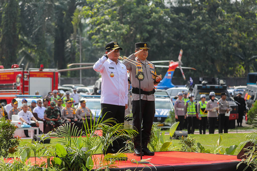 Pelaksanaan apel ditandai dengan pengecekan seluruh pasukan TNI/Polri, Satpol PP, Basarnas, BPBD Sumut serta stakeholder lainnya oleh Kapolda Sumut Irjen Pol Agung Setya Imam Effendi dan Pj Gubernur Sumut Hassanudin di Lapangan Bola Mapoldasu Medan Sumatra Utara.