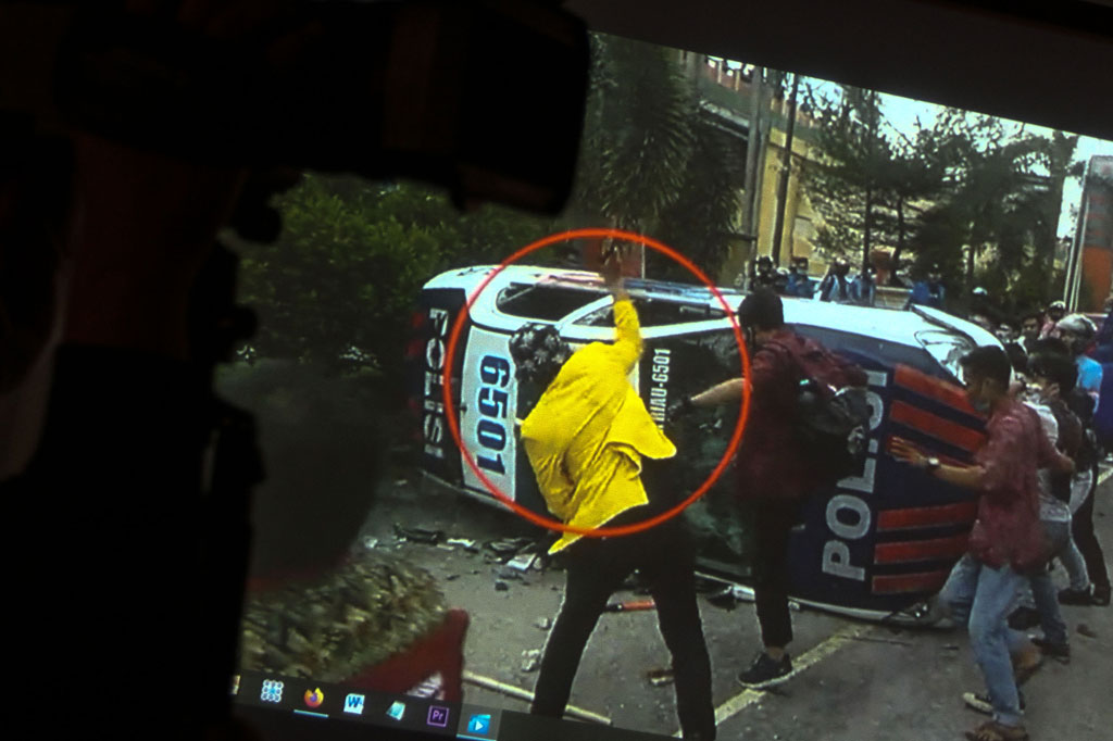 Pelaku yang saat berunjukrasa tolak UU Cipta Kerja pada Kamis, 8 Oktober 2020 lalu yang mengenakan jas almamater Universitas Lancang Kuning ini ternyata bukan mahasiswa, Polisi juga memperlihatkan barang bukti pengrusakan berupa video rekaman, kayu, batu, dan botol minuman keras.