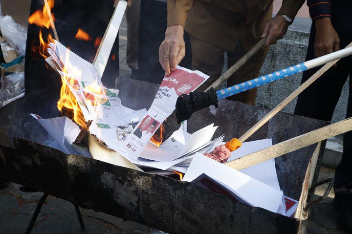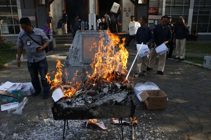 Banda Aceh: Sebanyak 1.775 surat suara rusak dimusnahkan oleh Komisi Independen Pemilihan (KIP) Kota Banda Aceh di halaman Gedung ITLC Pemkot Banda Aceh. Surat suara tersebut merupakan sisa dari hasil sortir dan pelipatan surat suara untuk Pemilihan Umum (Pemilu) 2024.