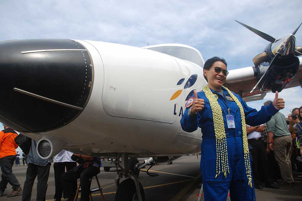 Metrotvnews.com, Bandung: Kapten Pilot Esther Gayatri Saleh mengaku bangga bisa menerbangkan untuk yang pertama kalinya purwarupa pertama pesawat N219 di Landasan Pacu Bandara Husein Sastranegara Bandung, Rabu (16/8/2017). Uji terbang perdana pesawat buatan PT Dirgantara Indonesia tersebut berjalan lancar dan sukses. ANTARA/Fahrul Jayadiputra Cek Berita dan Artikel yang lain di Google News