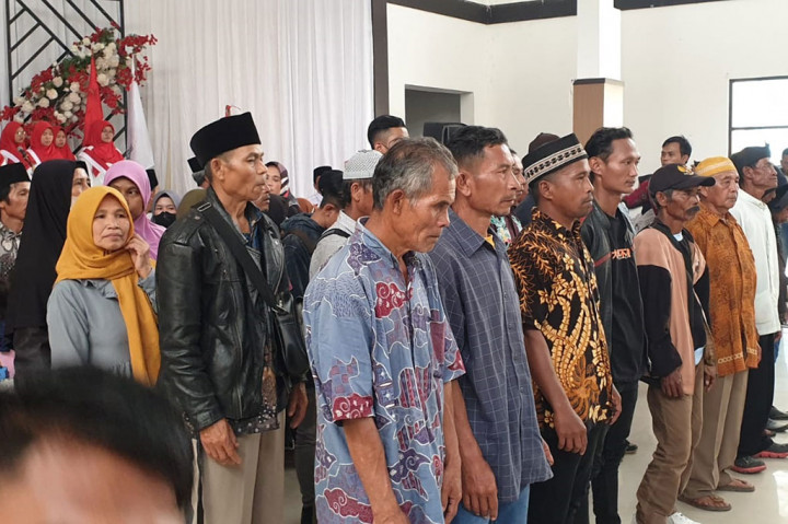 Garut: Sebanyak 104 orang menyatakan diri keluar dari keanggotaannya sebagai kelompok Negara Islam Indonesia (NII) dan mendeklarasikan sumpah setia ke pangkuan Negara Kesatuan Republik Indonesia (NKRI), di Gedung Lasminingrat, Kabupaten Garut, Jawa Barat, Selasa, 31 Januari 2023.