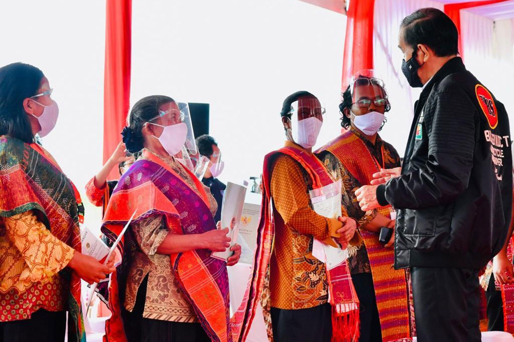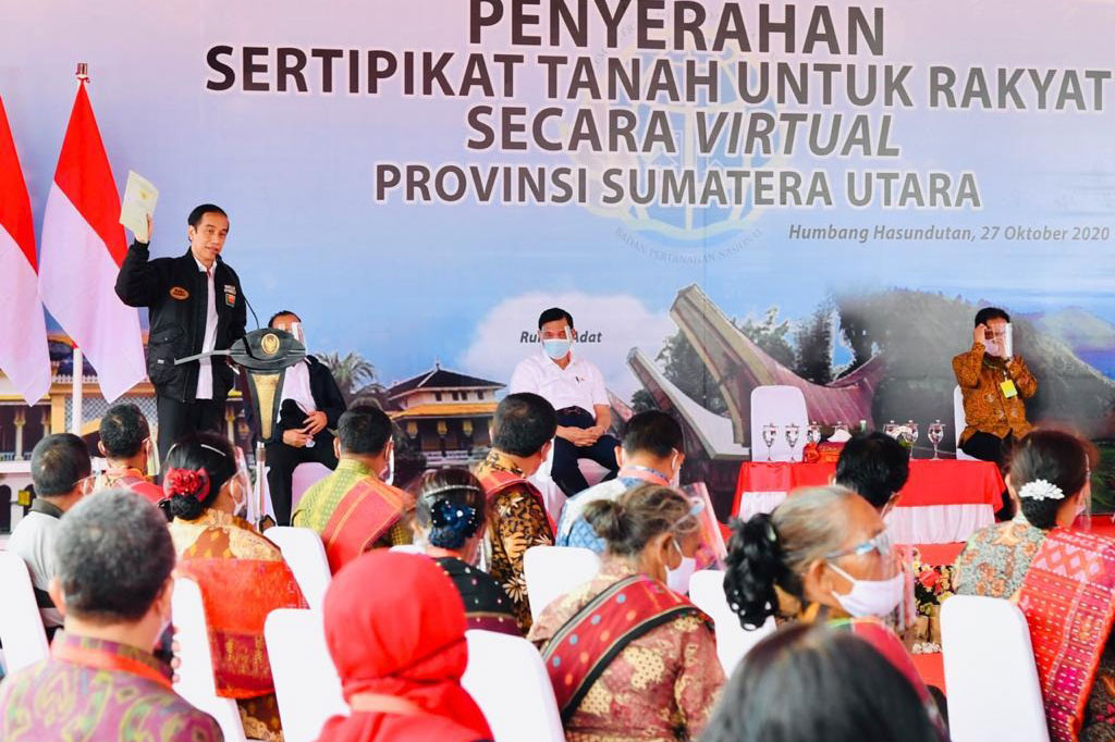 Humbahas: Presiden Joko Widodo (Jokowi) menyerahkan 22.007 sertifikat hak atas tanah untuk rakyat di Kabupaten Humbang Hasundutan (Humbahas), Provinsi Sumatera Utara (Sumut).