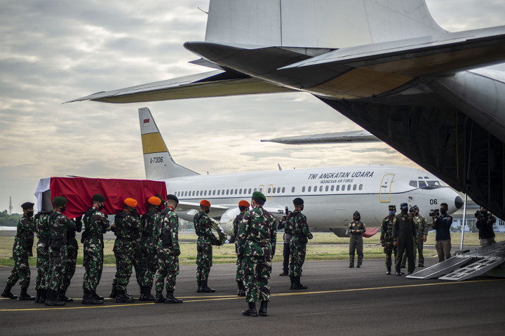"Hari ini, kita menyaksikan pemberangkatan dari Lanud Halim jenazah Pelda Anumerta Rama Wahyudi untuk diterbangkan ke Pekanbaru setelah semalam mendarat di Cengkareng dan langsung kita semayamkan di skuadron udara 17," kata Panglima TNI Marsekal Hadi Tjahjanto.