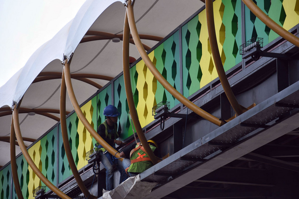 JPO dengan atap berwarna putih dan pembatas berwarna hijau dan kuning ini akan dapat digunakan pada Desember 2019.