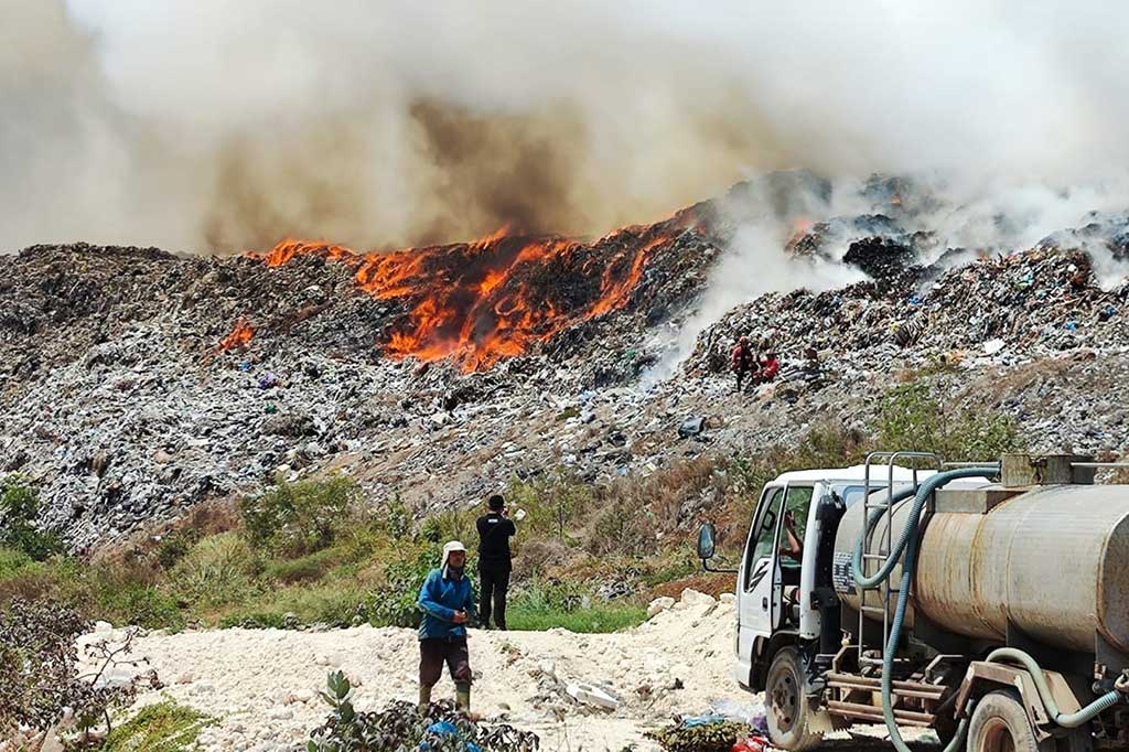 Denpasar: Kebakaran TPA Suwung Kecamatan Denpasar Selatan, Bali sudah memasuki hari kedua. Penanganan kebakaran sedikit menemui kesulitan karena petugas harus memotong jalur dengan cara membuka jalur baru untuk dilewati kendaraan atau mobil damkar.