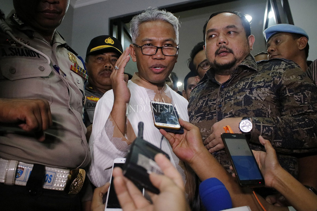 "Saya ke Lapas Gunung Sindur. Insya Allah saya mengikuti prosedur hukum," kata Buni Yani ketika keluar dari Kejari Depok, Jumat malam. Namun, ia menegaskan dirinya tidak mengakui apa yang dituduhkan kepadanya.  MI/Bary Fathahilah