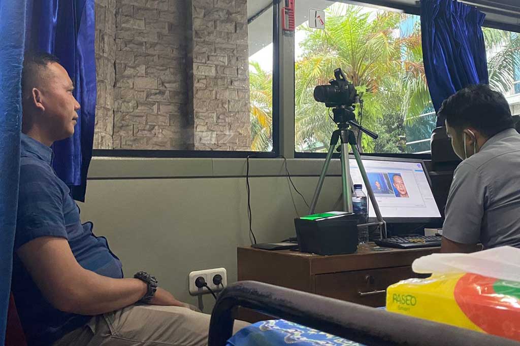 Didik menyebut pemohon akan bergeser ke meja pendaftaran dan mendapat nomor antrean. Setelah dipanggil, pemohon naik ke bus simling untuk difoto dan memindai sidik jari.