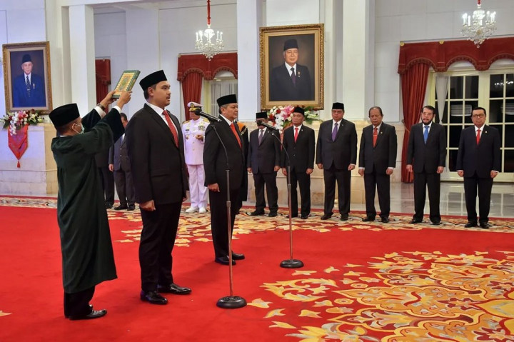Jakarta: Presiden Joko Widodo melantik Komjen Rycko Amelza Dahniel sebagai Kepala Badan Nasional Penanggulangan Terorisme (BNPT), Senin, 3 April 2023, di Istana Negara, Jakarta. Pelantikan dilakukan bersamaan dengan pelantikan Dito Ariotedjo sebagai Menpora.