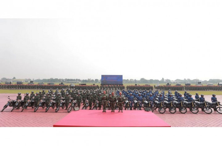 Usai sesi penganugerahan gelar itu secara simbolis, Prabowo memberikan alat peralatan pertahanan (alpalhan) untuk Kopasgat TNI AU. Alat tersebut berupa 100 unit sepeda motor.
