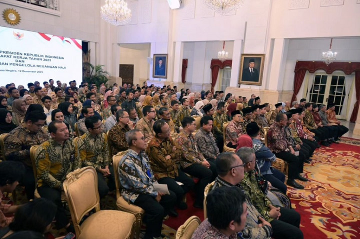 "Ini gede banget dana yang dikelola. Jadi saya titip, hati-hati mengelola uang yang ada di BPKH," kata Presiden Jokowi ketika menyampaikan arahan dalam Rapat Kerja Tahun 2023 BPKH di Istana Negara, Jakarta, Selasa, 12 Desember 2023.