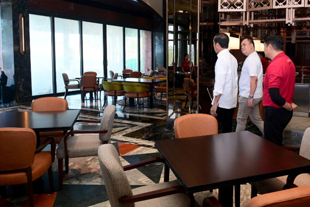 Setibanya di hotel, Jokowi meninjau langsung sejumlah fasilitas yang ada, mulai dari lobi, tempat makan, hingga kamar tidur.