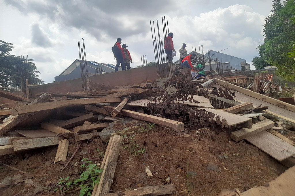 Sebelumnya area berpagar seng di sekelilingnya itu, tengah dalam pekerjaan bangunan rumah yang saat ini sudah dalam proses cor lantai dua bangunan.