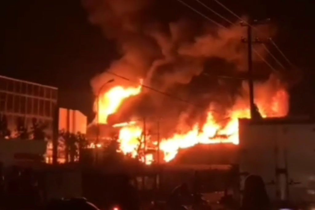 Sidoarjo: Kebakaran hebat melanda gudang penyimpanan barang bekas, di kawasan komplek pergudangan Tambakrejo Kecamatan Waru, Sidoarjo, pada Jumat, 7 Juni dini hari. Kobaran api menghanguskan tiga unit mobil di dalamnya dan sempat menjalar ke pemukiman warga.