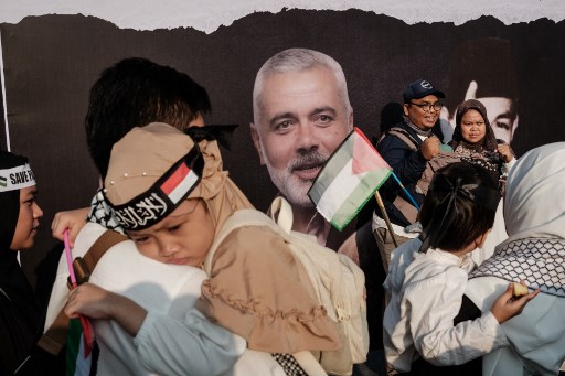 Massa pun mengecam pembunuhan terhadap para pemimpin Gaza dan Palestina oleh Israel, termasuk pembunuhan terhadap mantan Perdana Menteri Palestina Ismail Haniyeh di Teheran, Iran, pada Rabu, 31 Juli.