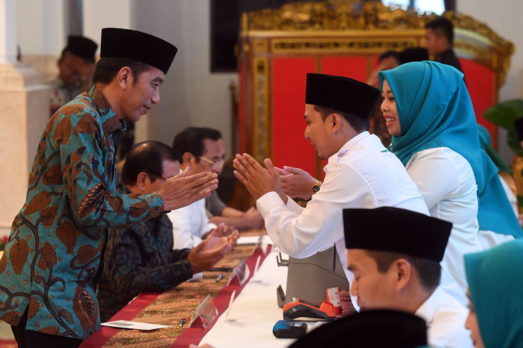 Jakarta: Presiden Joko Widodo membayar zakat mal sebesar Rp55 juta atau naik Rp5 juta dibandingkan tahun lalu. Seluruh zakat tersebut dibayarkan secara tunai melalui Baznas di Istana Negara, Jakarta, Kamis, 16 Mei 2019. Antara Foto/Akbar Nugroho Gumay Cek Berita dan Artikel yang lain di Google News
