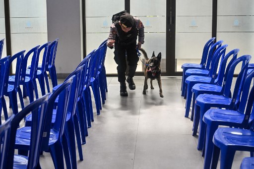 Jakarta: Kepolisian menyiagakan sepuluh anjing pengamanan (K-9) untuk menjaga misa malam hingga perayaan Natal 2024 di Gereja Katedral, Jakarta Pusat, Selasa, 24 Desember 2024.
