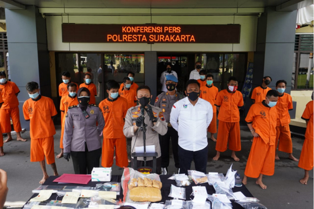 Solo: Satuan Narkoba Polresta Solo menangkap 18 tersangka dan mengamankan 2,1 kg ganja berikut 46,65 gram sabu. "Itu semua hasil dari 15 LP, dengan 18 tersangka, berikut barang bukti sabu dan ganja," tukas Wakapolresta Solo, Ajun Komisaris Besar (AKB) Pol Gatot Yulianto dalam jumpa pers di Mako I Manahan, Selasa, 29 Juni 2021.