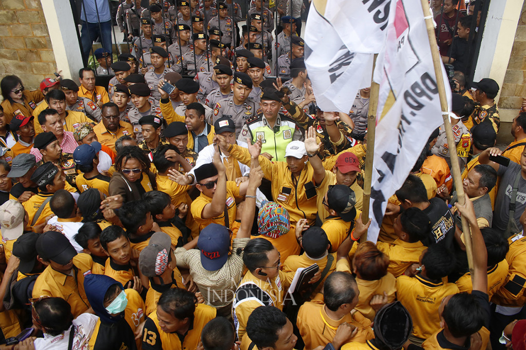 Jakarta: Ratusan kader dan simpatisan partai Hati Nurani Rakyat (Hanura) menggeruduk kantor Komisi Pemilihan Umum (KPU) RI di Menteng, Jakarta Pusat, Rabu, 20 Desember 2018. Mereka menuntut agar nama ketua Umum Partai Hanura Oesman Sapta Odang (OSO) segera dimasukkan ke dalam Daftar Calon Tetap (DCT) Dewan Perwakilan Daerah Pemilihan Umum 2019. MI/Bary Fathahilah Cek Berita dan Artikel yang lain di Google News