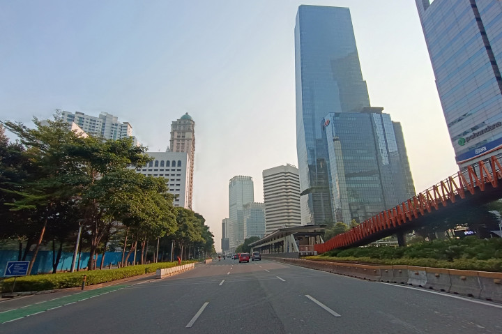 Jakarta: Suasana arus lalu lintas yang sepi di kawasan Sudirman-Thamrin, Jakarta, Senin, 16 September 2024. Seputaran jalan protokol di kawasan Jakarta yang biasanya dipadati kendaraan roda dua dan empat terpantau lengang karena libur panjang.