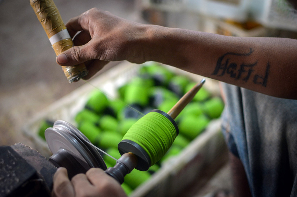 Sumedang: Di Kabupaten Sumedang, Jawa Barat ada sentra pengrajin gelasan atau benang untuk layang-layang. Kampung Gelasan namanya. Produk benang gelasan dari kampung tersebut diminati oleh pehobi layang-layang adu di berbagai negara Asia Tenggara seperti Malaysia, Brunei Darussalam, dan Filipina. ANTARA FOTO/Raisan Al Farisi Cek Berita dan Artikel yang lain di Google News
