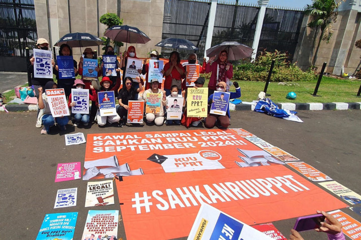 Hal itu disampaikan koordinator aksi dari Koalisi Masyarakat Sipil untuk Undang-Undang PPRT, Jumisih. Dia bersama puluhan orang lainnya menggelar aksi di depan Kompleks Parlemen, Senayan, Jakarta.