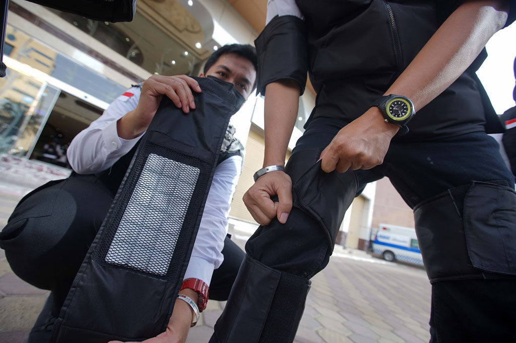 Pasien akan dipakaikan rompi lengkap dengan decker untuk meredam saraf-saraf sensorik yang banyak di bagian tubuh terbuka yang tersengat Matahari yaitu bagian lengan, paha, dan betis. Dalam keadaan darurat, techno cool bisa langsung ditempelkan di tubuh pasien.