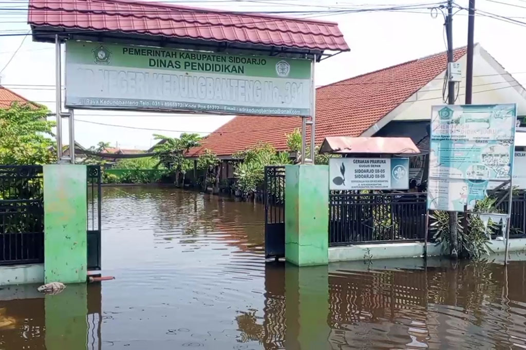 Sidoarjo: Desa Kedungbanteng dan Banjarsari di Kecamatan Tanggulangin, Kabupaten Sidoarjo, Jawa Timur, kembali terendam banjir setelah hujan deras turun. Selain merendam ratusan rumah warga, banjir juga menggenangi tiga bangunan sekolah.