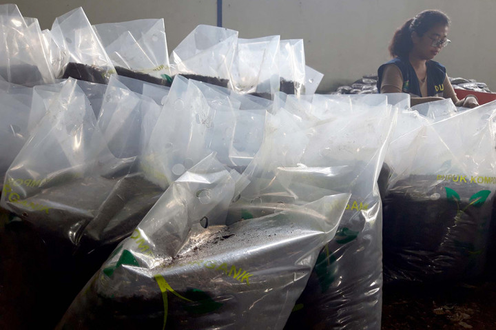 Tangan perempuan itu cekatan. Tak menunggu lama, kompos yang menggunung sudah beralih tempat ke dalam wadah plastik. Kemasan bertuliskan pupuk organik diproduksi oleh Dinas Lingkungan Hidup Kota Malang.
