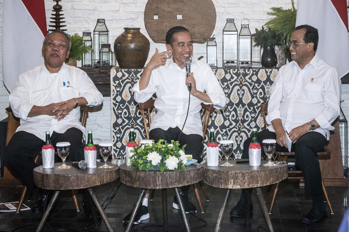 Jakarta: Presiden Joko Widodo mengungkapkan alasannya kembali mengedepankan pembangunan infrastruktur pada periode keduanya. Pertama dia mengaku terbiasa untuk kerja secara fokus dan tidak ingin hasilnya kurang baik. Alasan lainnya, Jokowi melihat Indonesia perlu meningkatkan peringkat daya saingnya dengan negara lain. Hal ini diungkapkan Jokowi dalam diskusi Forum A1 Inisiatif Indonesia di Jakarta, Kamis, 14 November 2019. Antara Foto/Aprillio Akbar Cek Berita dan Artikel yang lain di Google News