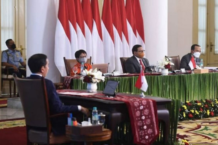 Turut mendampingi Presiden dalam acara tersebut yaitu Menteri Luar Negeri Retno Marsudi, Sekretaris Kabinet Pramono Anung, dan Direktur Jenderal Amerika dan Eropa Kementerian Luar Negeri I Gede Ngurah Swajaya. Foto: BPMI Cek Berita dan Artikel yang lain di Google News