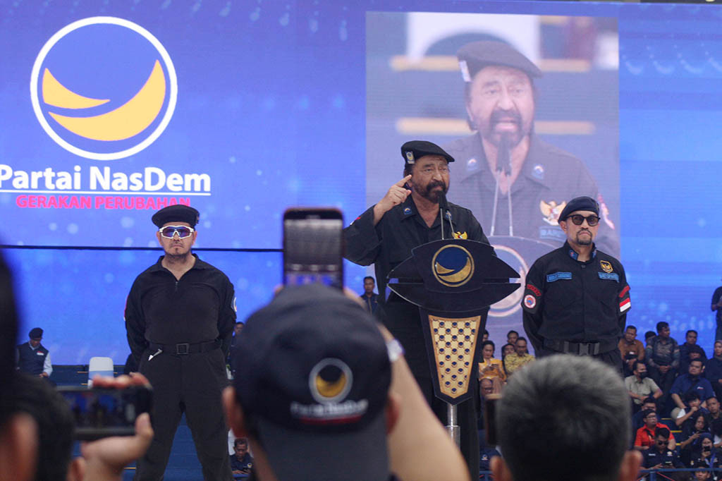 Ketua Umum Partai NasDem Surya Paloh dan bakal calon presiden dari Koalisi Perubahan untuk Persatuan (KPP) Anies Baswedan turut menyampaikan orasi politik pada acara tersebut. MI/Moh Irfan Cek Berita dan Artikel yang lain di Google News