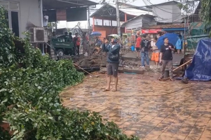 "Saya sangka gempa, tapi beneran anginnya kencang banget, eh engga tahunya pohonnya begini akarnya tumbang, saya lagi dagang pecel lele ini," kata Suripto di lokasi kejadian, Rabu, 3 Juli 2024.