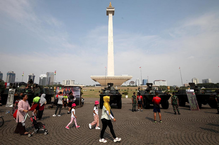 Jakarta: Sebanyak 125 unit alat utama senjata (alutsista) dari tiga matra TNI (AL, AU, dan AD) dipamerkan di Lapangan Monumen Nasional (Monas) Jakarta dalam rangka memeriahkan HUT Ke-78 TNI.