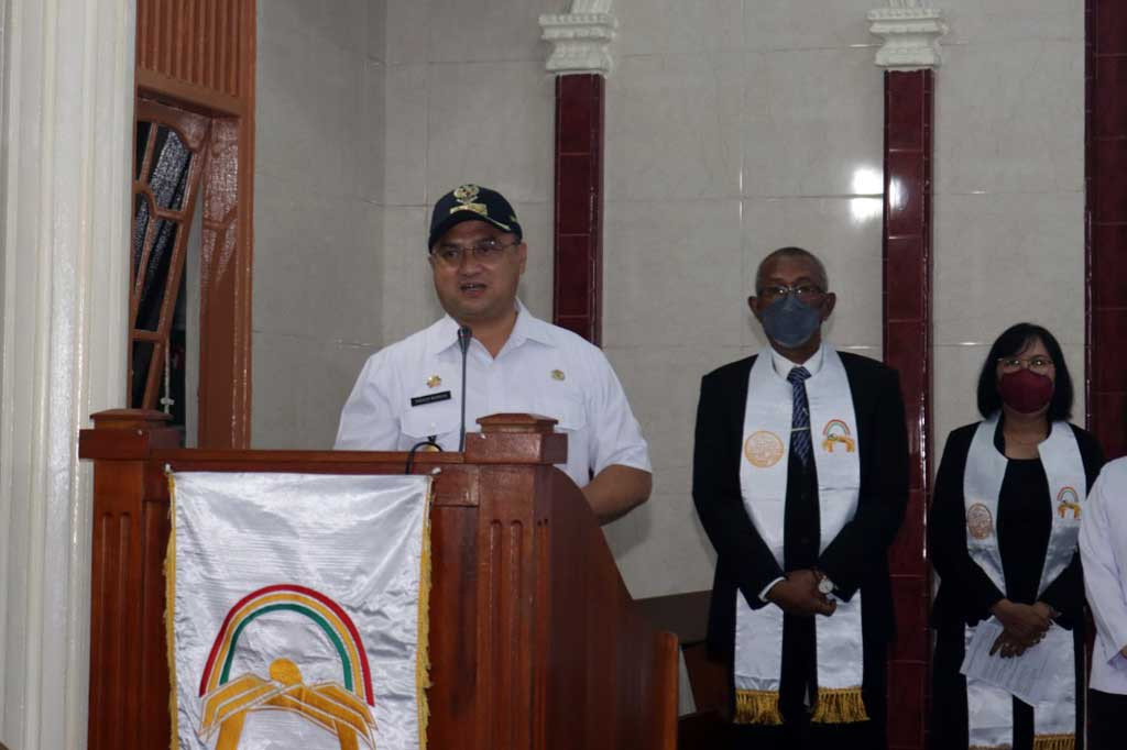 Kepada para jemaat gereja, gubernur berpesan bahwa saat ini pandemi covid-19 belum usai, ditambah dengan munculnya varian omicron yang mana resiko penularannya 5 kali lebih ganas dari varian Delta, sehingga ia meminta untuk masyarakat agar jangan kendor dalam menerapkan protokol kesehatan.