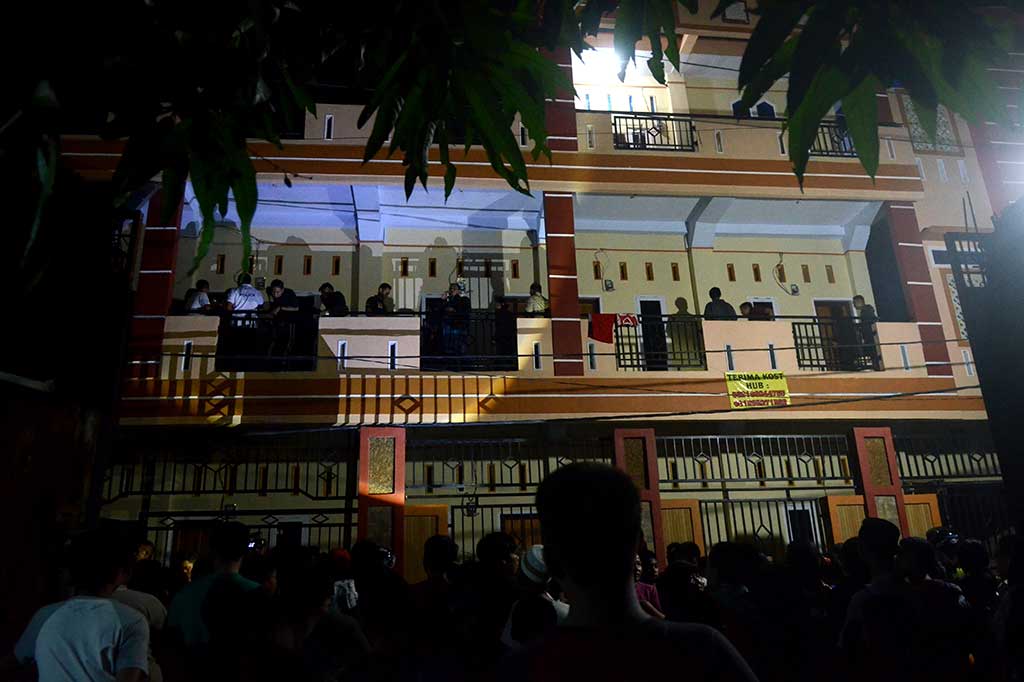 Warga memadati lokasi ledakan di sebuah kos-kosan di Jalan Barawaja II, Kelurahan Tammua, Kecamatan Tallo, Makassar.