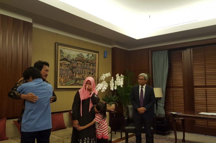Jakarta: Kemenlu menyerahkan seorang sandera WNI Usman Yunus, yang dibebaskan dari Filipina Selatan kepada keluarga, Kamis, 13 Desember 2018. Usman Yunus bersama dengan satu orang WNI/ABK lainnya diculik oleh kelompok bersenjata di perairan dekat Pulau Gaya, Samporna, Sabah, pada 11 September 2018 dan dibebaskan pada 7 Desember 2018. Dok.Kemenlu RI Cek Berita dan Artikel yang lain di Google News