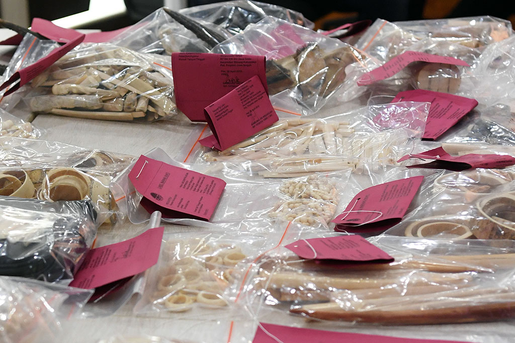 Jakarta: Kementerian Lingkungan Hidup dan Kehutanan (KLHK) bekerja sama dengan Polres Pati, Jateng, mengungkap jaringan perdagangan dalam jaringan (online) kerajinan berbahan dasar gading gajah yang bernilai sekitar Rp420 miliar. Antara Foto/Wahyu Putro A Cek Berita dan Artikel yang lain di Google News