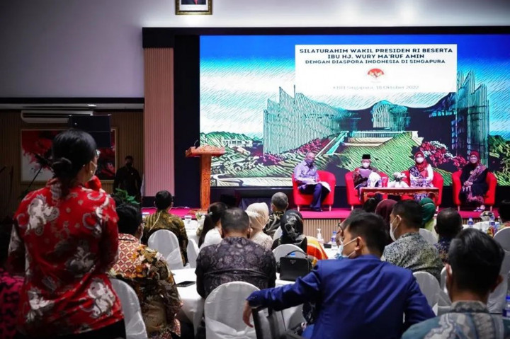 Singapura: Wakil Presiden Ma’ruf Amin berdialog dengan diaspora Indonesia di Singapura, kata Duta Besar RI untuk Singapura Suryo Pratomo dalam keterangan yang diterima di Jakarta, Selasa, 18 Oktober 2022.