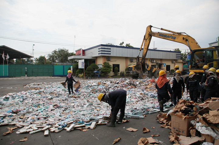Rokok ilegal dan minuman mengandung etil alkohol itu dimusnahkan secara simbolis di kantor Bea Cukai Sidoarjo. Pemusnahan secara simbolis dihadiri Bupati Sidoarjo Ahmad Muhdlor Ali. Sementara pemusnahan seluruh barang bukti dilakukan di PT Hijau Alam Nusantara (HAN) Mojokerto Jawa Timur dengan cara dibakar. MI/Heri Susetyo Cek Berita dan Artikel yang lain di Google News