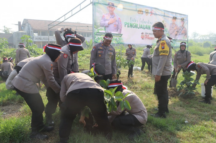"Dalam penanaman pohon seluruh polsek melibatkan unsur forkopimka, tokoh agama, tokoh masyarakat, ada juga polwan, bhayangkari hingga rekan media ini, Kami berharap upaya penghijauan menjadi iktikad baik bersama kita semua," kata Kapolresta Sidoarjo Kombes Kusumo Wahyu Bintoro.